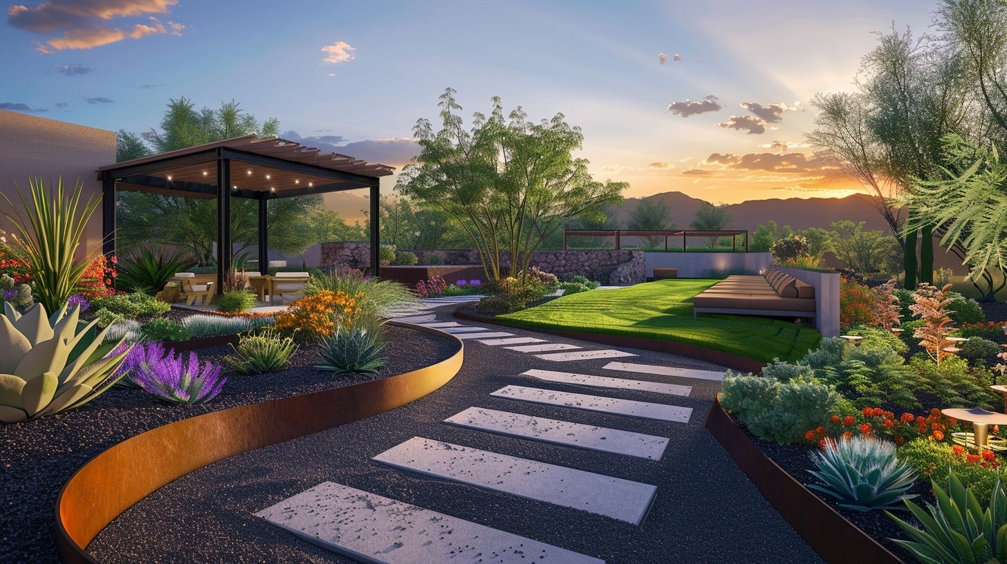 Premium desert-rated turf with clean, modern edges.